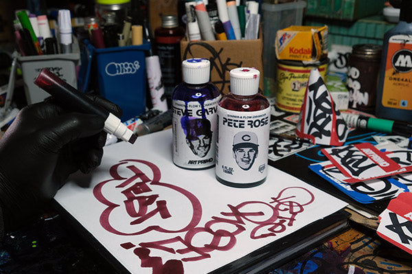 Pete Rose Staining InkIt's the Big Red Machine! Pete Rose is a versatile scarlet stainer and flow-enhancing ink for mops and markers. Use Pete alone as a gloriously sticky red ink or add him to your favorite mop for a higher flow and a bleed-through staining effect. Shake well before use.