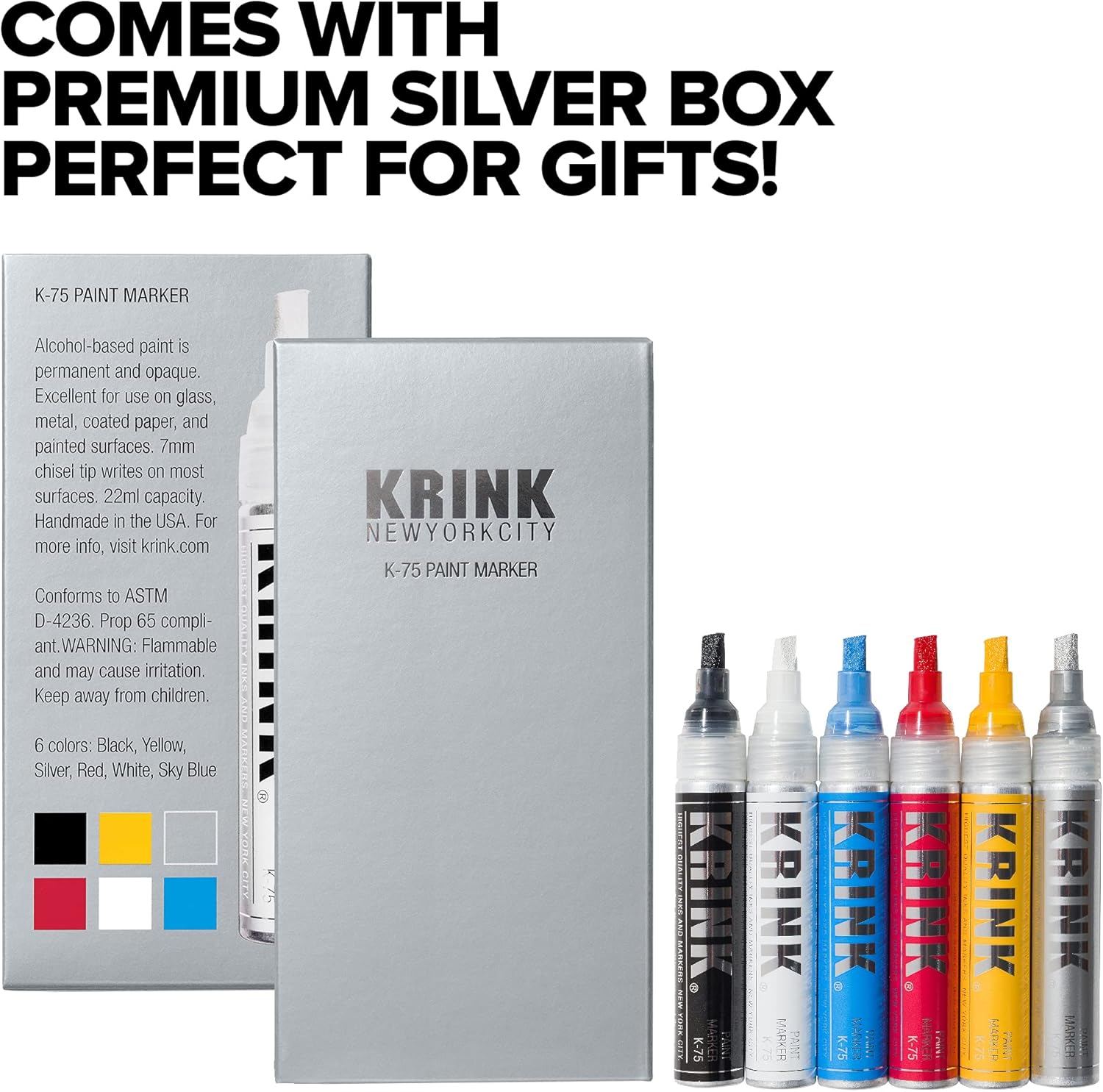 Krink paint markers were born out of a desire for a better marker. Krink’s founder began making small amounts of markers for his personal use and then shared them with friends. Staying true to these humble artistic beginnings, the markers are still handmade in the USA in small batches. This ensures superior quality and consistency in every marker, making Krink the go-to brand for professionals and artists alike and a leader in the graffiti and fine art market. Krink K-75 Paint Marker can be used to create eye-catching artwork. Together with a rich, bold, and vibrant paint formula, you can create fine art works as well as murals and installations. The K-75 is an artist grade paint marker with exceptional performance and durability. These markers have permanent, high opacity, alcohol-based paint that flows easily and dries quickly. Conveniently control paint flow with the valve-action chisel nib to create fade- and water-resistant artwork on glass, metal, coated paper, painted surfaces and more. The streets, the walls, the canvas – wherever you create Krink is here to help you harness your limitless creativity. The superior quality of the Krink K-75 gives you the peace of mind that comes from having steadfast and reliable artist tools, so you can focus on expressing yourself. Free your imagination and let Krink bring out the professional artist in you.